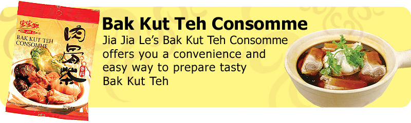 Now you can prepare your own Bak Kut Teh at home. Simply add in Jia Jia Le Bak Kut Teh Consomme and rib-bones, meat, garlic, and sauces, cook for 1 hour and it is ready to server.
